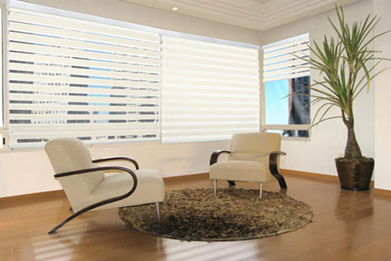 Sheer Elegance es una persiana formada partir de bandas alternadas de tela traslúcida y opaca; a través del movimiento de bandas obtenemos.